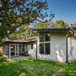 One of the most significant aspects of this remodel was the complete removal and reshaping of the roofline. The new design features a modern single pitch, giving the home a fresh mid-century modern look from top to bottom. This architectural overhaul not only enhanced the home’s curb appeal but also laid the foundation for a cohesive design throughout.